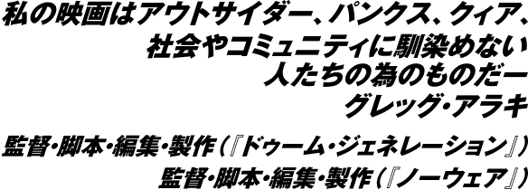 ニュー・クィア・シネマの美学とテーマを最も過激でセンチメンタルに表現する映画作家グレッグ・アラキ。